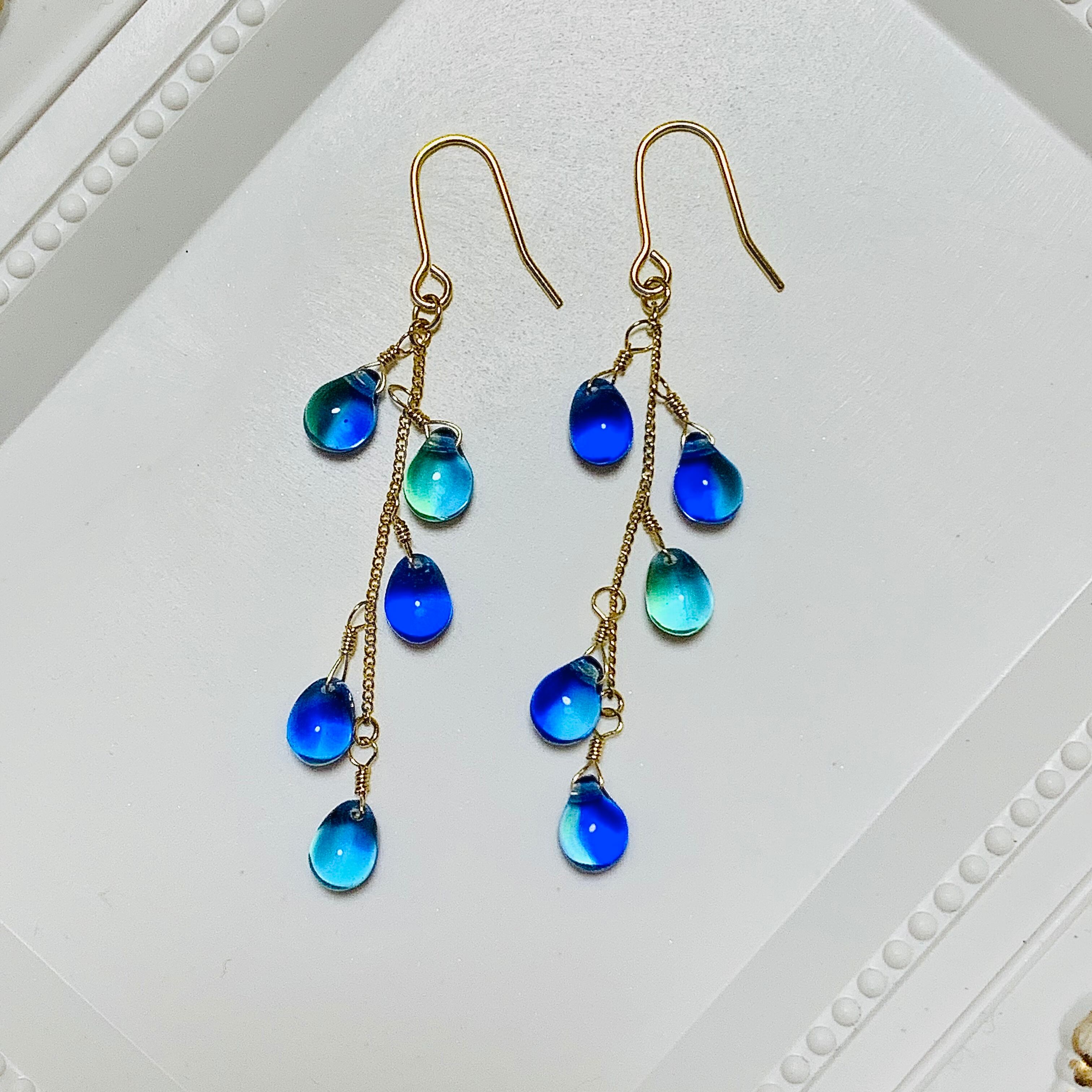 雨の雫をイメージしたチェコビーズのピアス